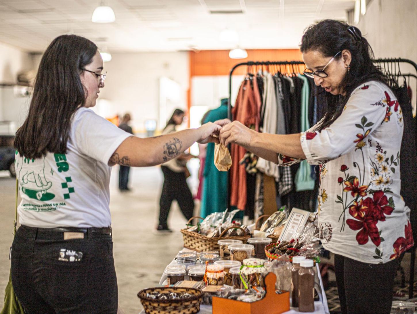 À frente da proposta está Vicky Chaves (24 anos), fundadora do Câmbio do Bem e também idealizadora do Encontro Moda Circular, junto com sua equipe de voluntários.