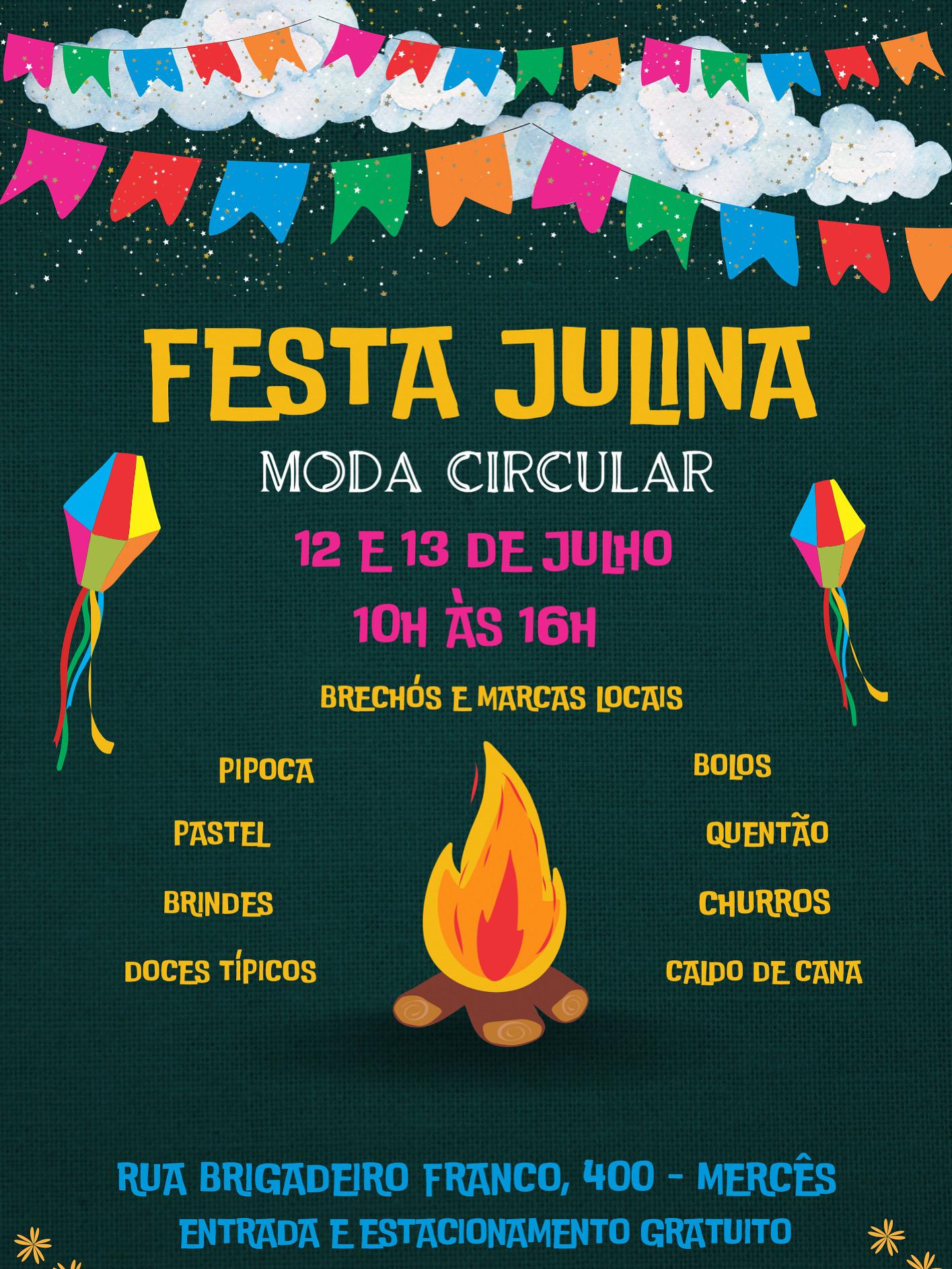 E nesta edição julina, além da moda circular, o público poderá curtir comidas típicas, foodtrucks, brincadeira e prêmios !